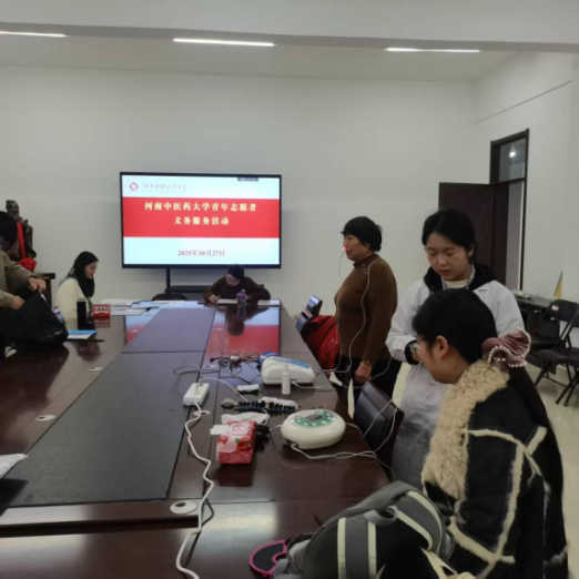 为进一步关爱教职工健康、增强教职工疾病的防范意识,普及健康知识,传承中医药文化。近日,学院分工会特邀河南中医药大学青年服务志愿团队来我院开展为期一周的健康义诊服务活动。